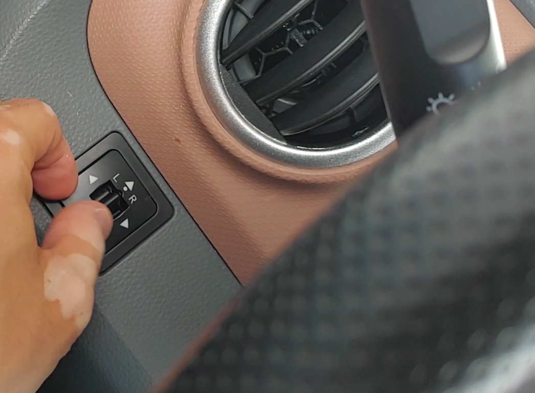 운전대 왼쪽 아래에 사이드미러 전동 조절기도 달려있습니다.