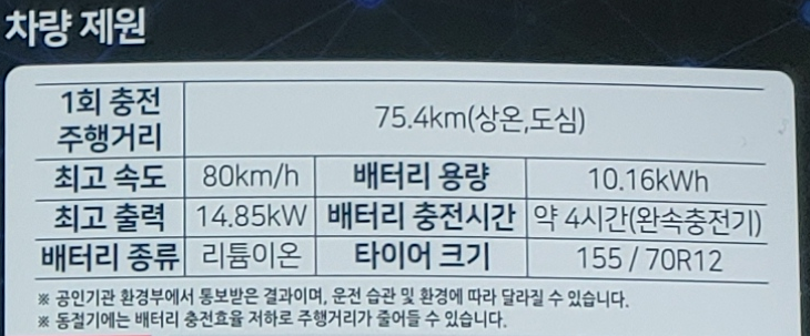 충전 시 주행거리는 약 75.4km라고 되어있네요.