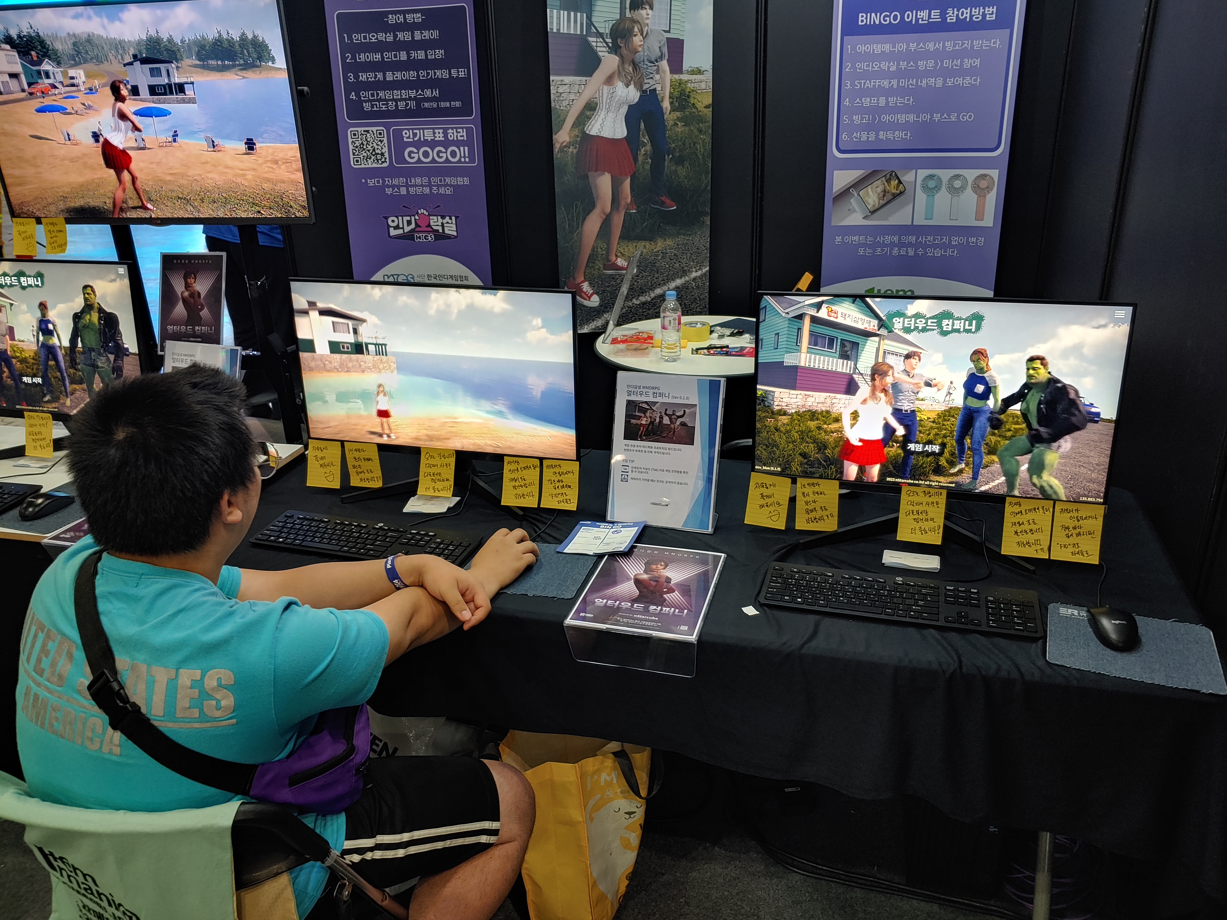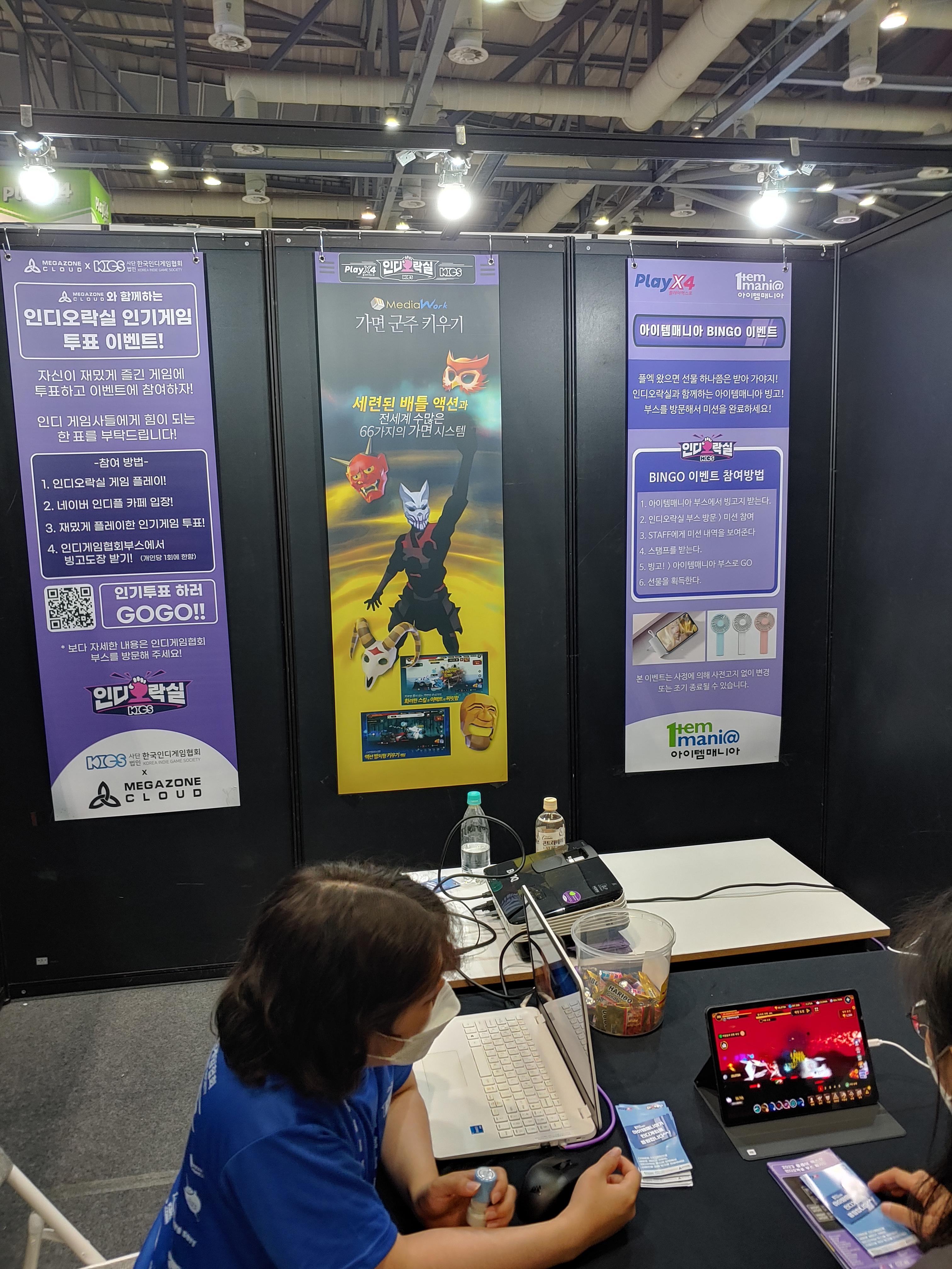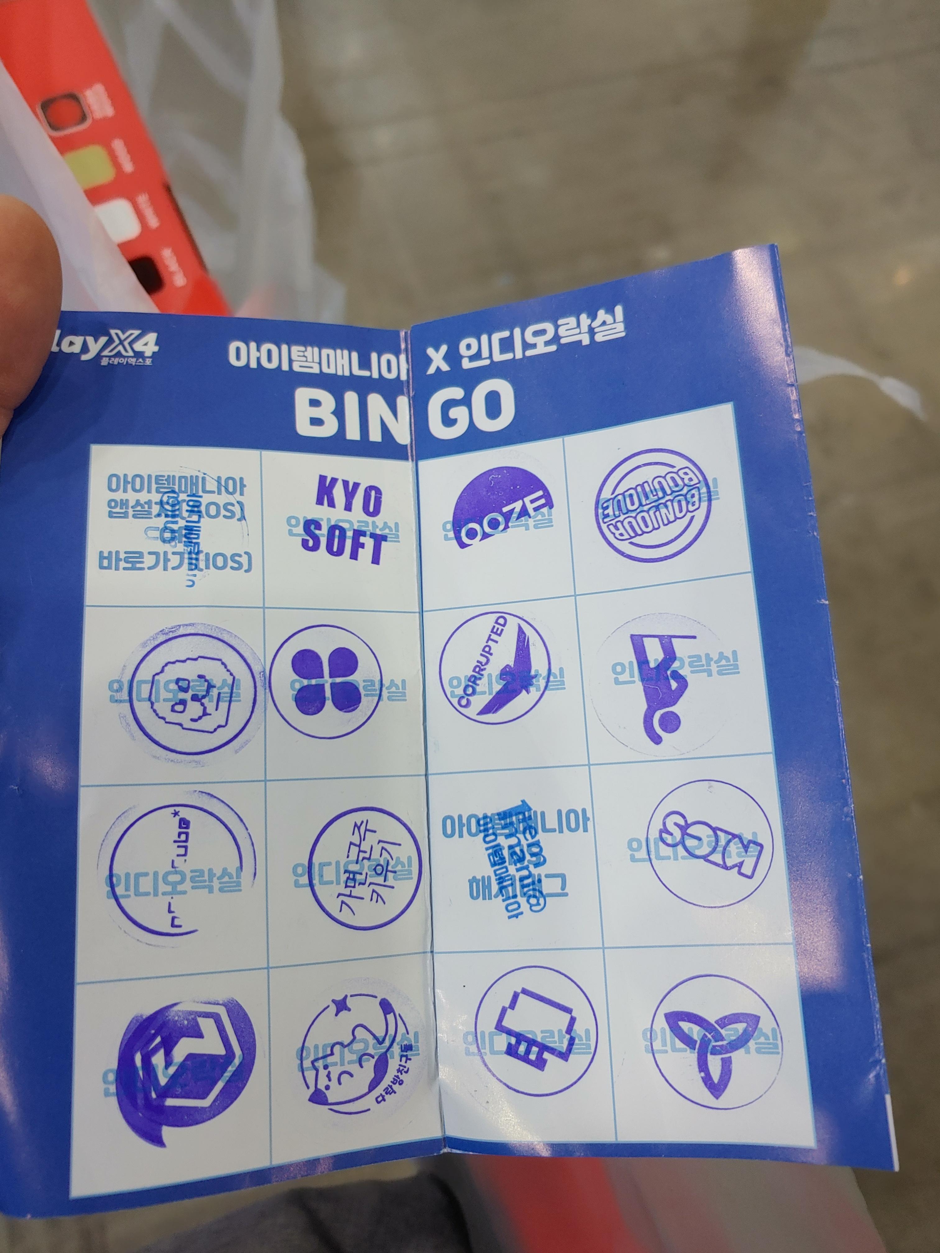 약 40여개 인디게임부스에 가서 각 게임을 시연해보고 업체 관계자한테 도장을 한개씩 받는다.