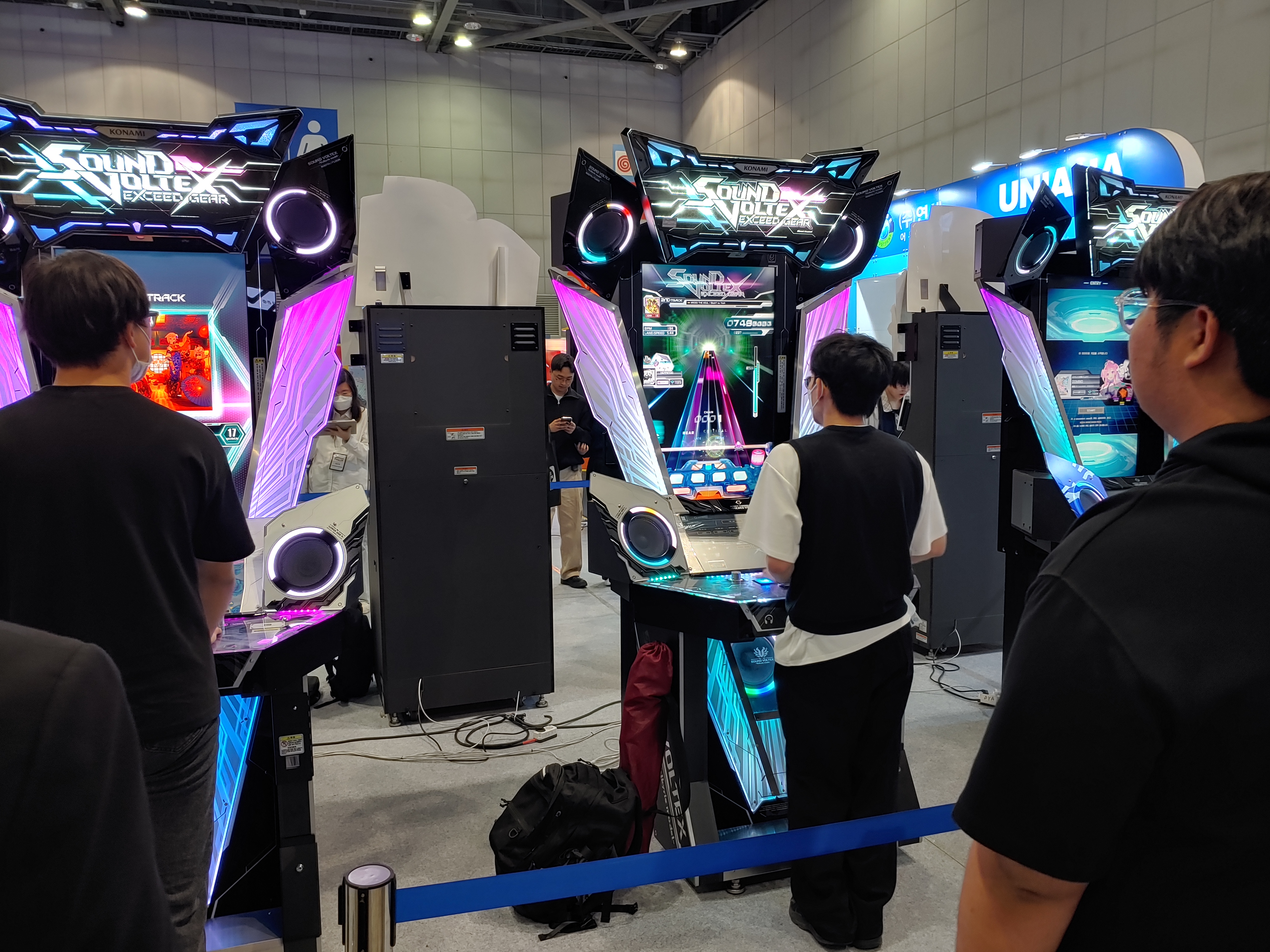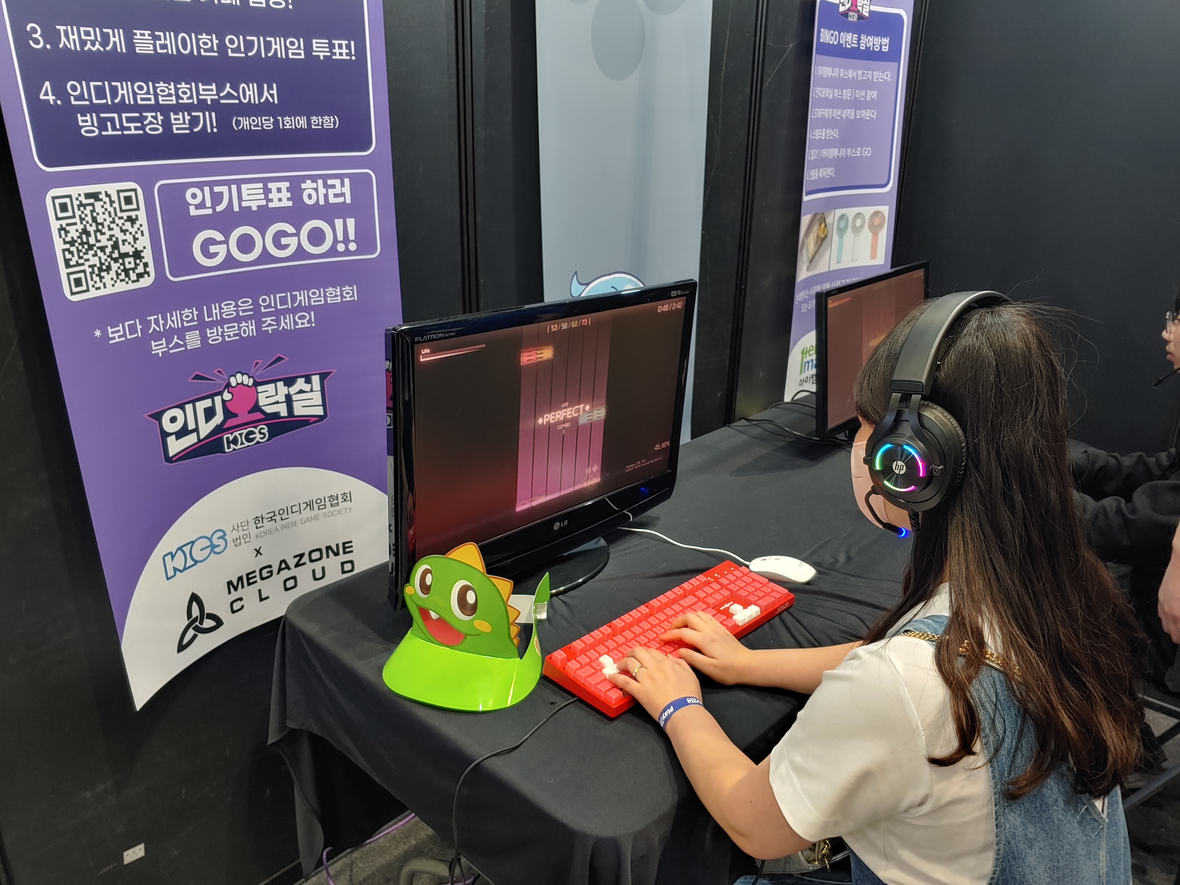 케세라의 칼파, 리드미컬즈의 코텍스, 사진에는 없지만 저스트댄스도 있었고 저스트댄스 닮은... 뭐 나쁘게 표현하면 짭냄새나는 즐링이란 게임도 시연가능한 형태로 출품되어있다.