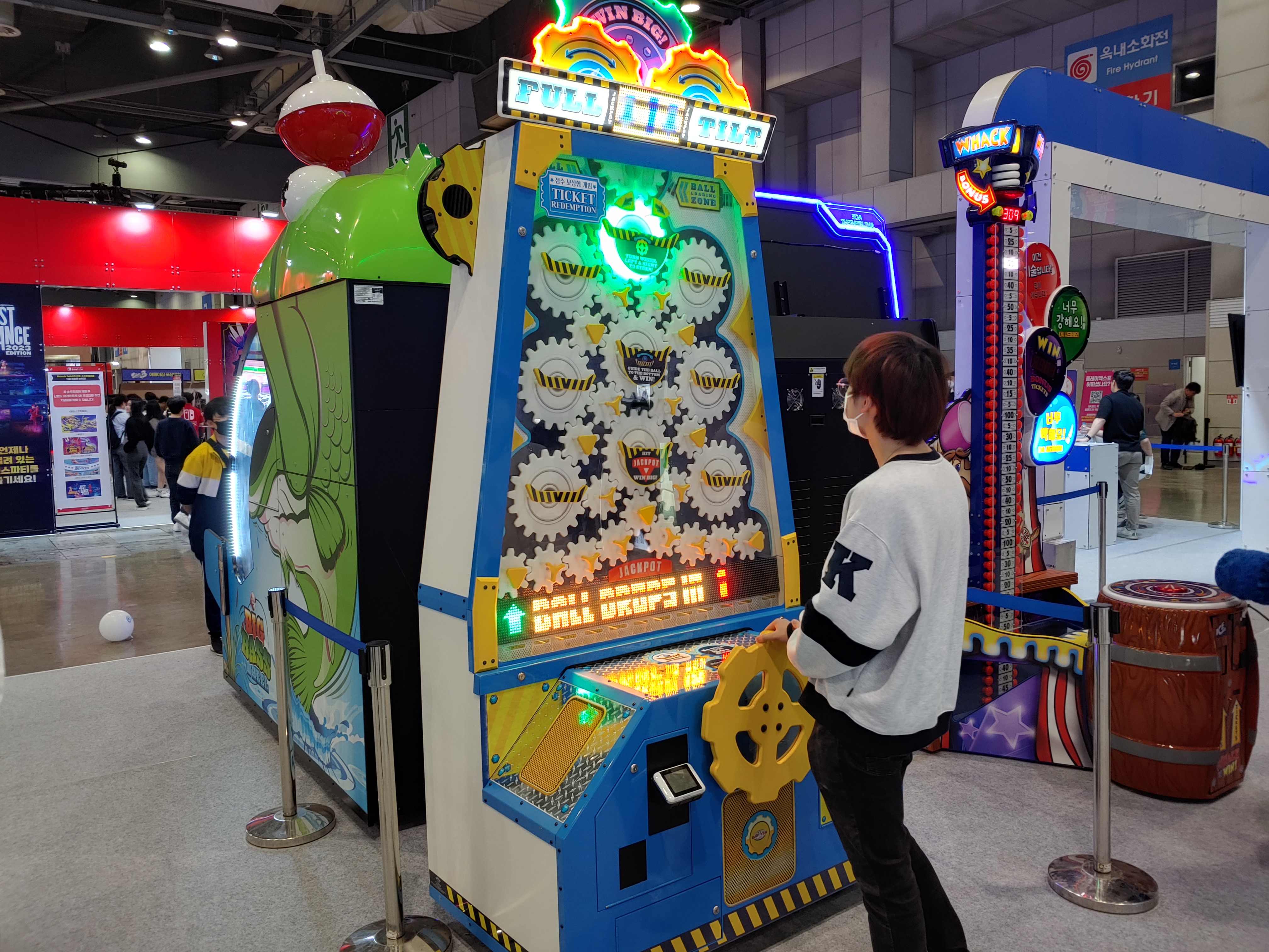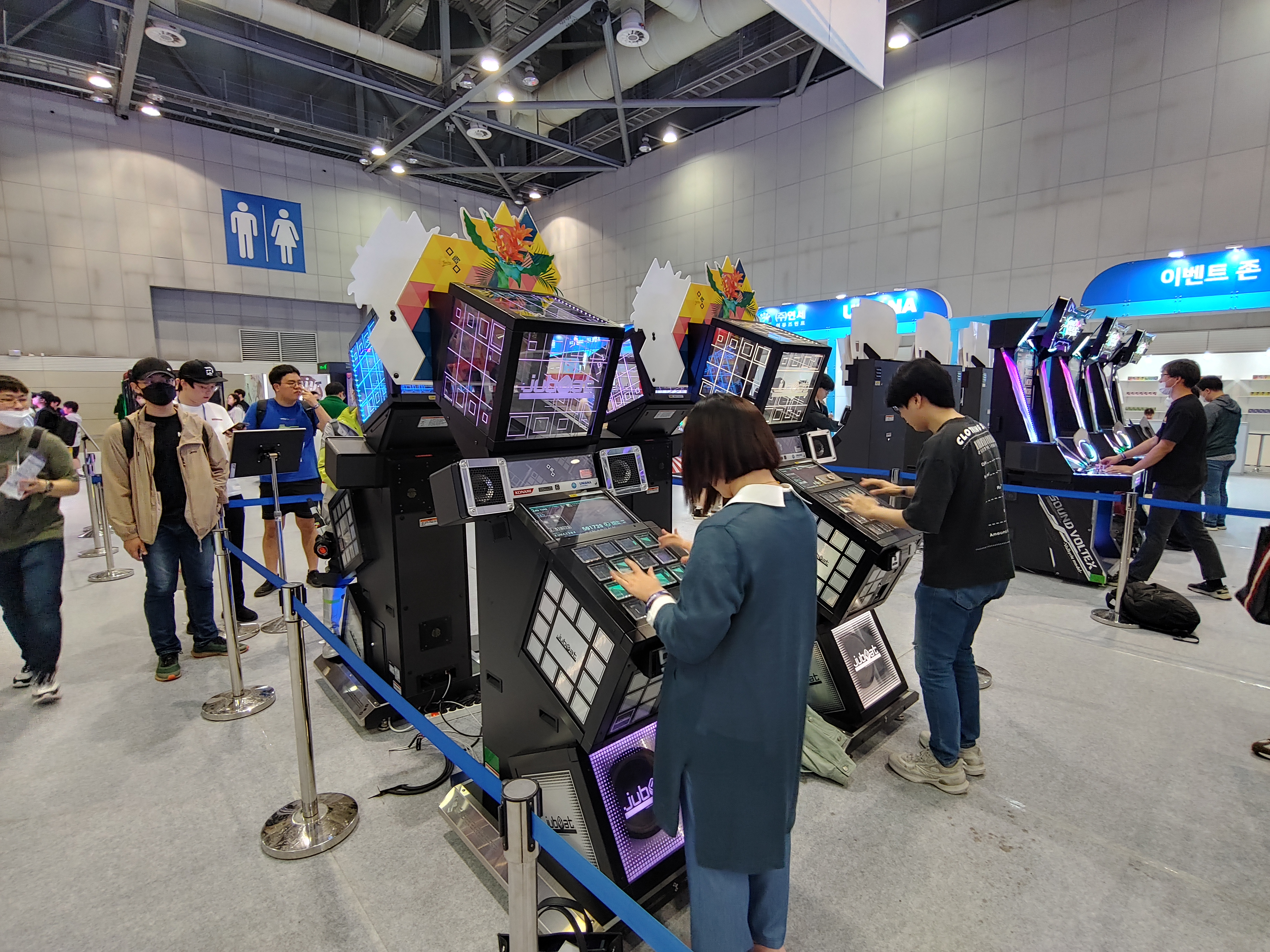 입구에서 맨 왼쪽에 리듬게임이 주로 있는 아케이드와 메인이벤트장이 있고