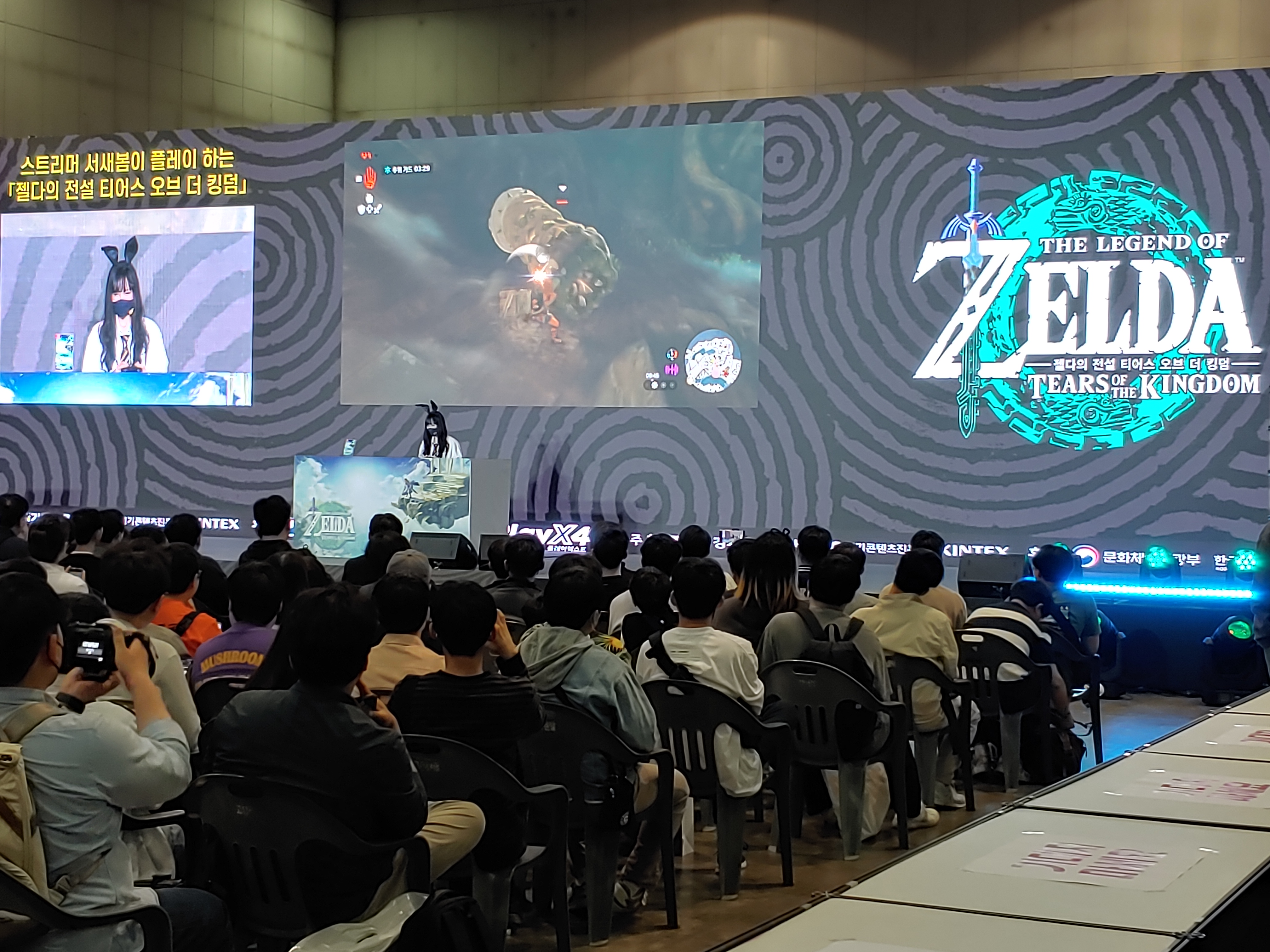 그 전까지 텅텅 비어있거나 어떤 스테이지 행사가 진행되더라도 드문드문 사람이 앉아 있었는데 젤다 시연시간동안은 초만원! 주변까지 사람들이 벌떼같이 몰려들었다.