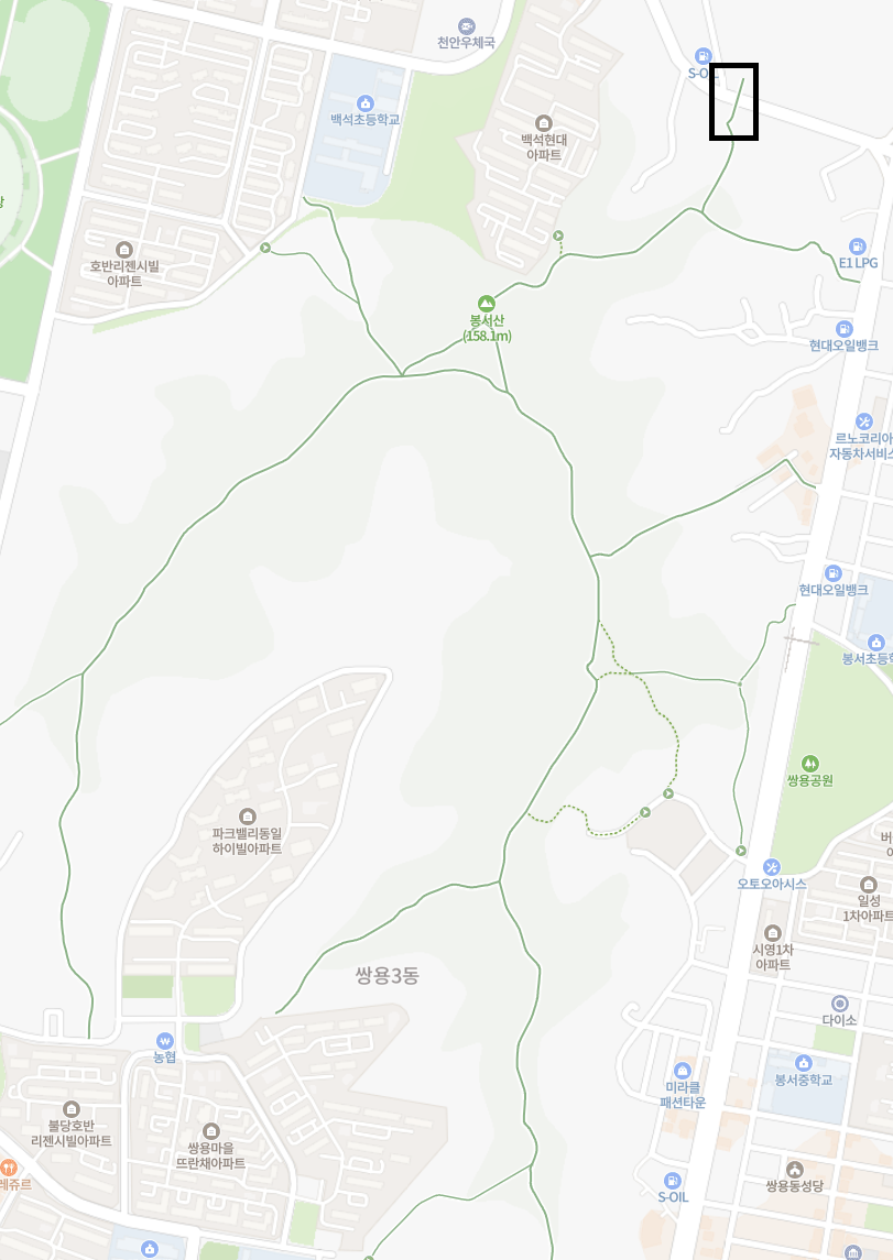 정작 천안에서 가장 편하게 갈 수 있는 포인트는 봉서산 아래 있는 육교. 지도에 저 검은색 네모.